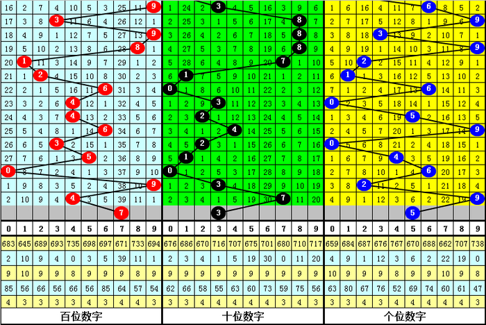 5.下期奖号跨度分别开出:6、6、6、4、3、7、7、6、6、6,其中跨度012路比为7:3:0,大小比8:2,奇偶比为3:7,本期适当关注小跨度开出,参考跨度4。
