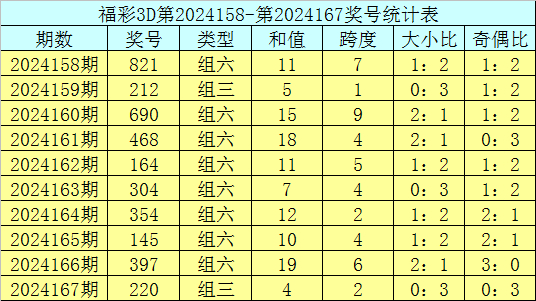 类型判断:上期奖号为220。号码0近10期出现3次,走冷,号码出现频次较高,上期各位号码走势较温,本期关注温码开出。