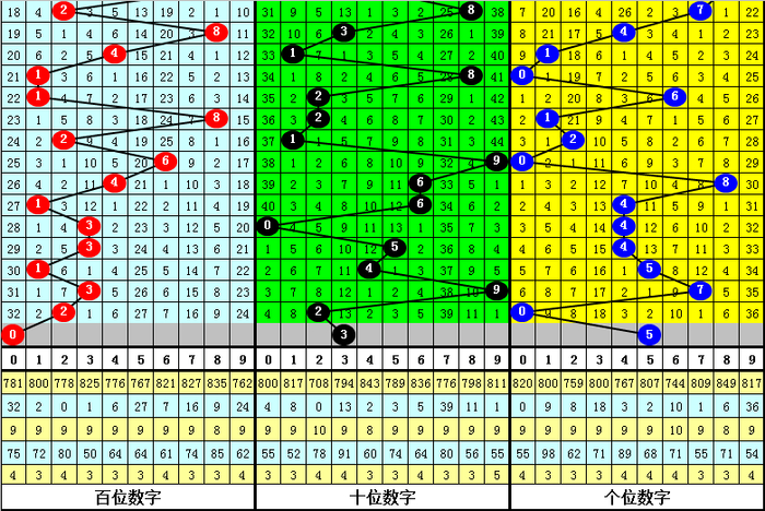 和值分析:和值近期分布较广,上期和值为4,本期看好和值上升,参考和值8。