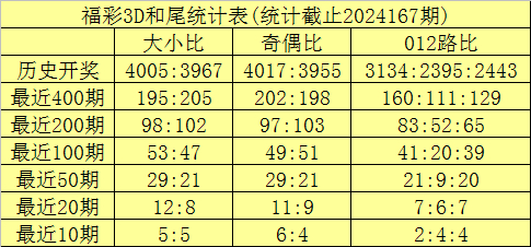 和尾大小分析:在前50期开奖中和尾大小比为29:21,大和尾出现较多;在前20期开奖中和尾大小比开出12:8,小和尾处于弱势地位,本期注意小和尾开始回补。