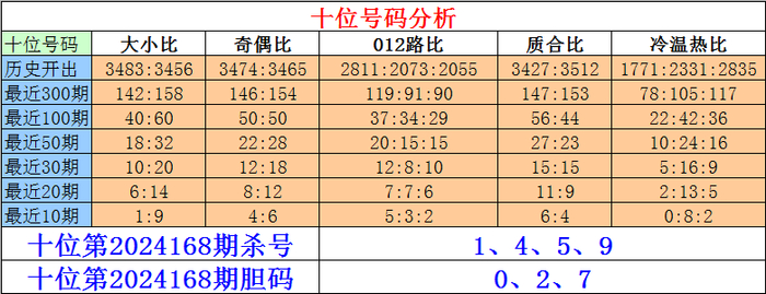 近期十位奇数出现较少,当期轮空1期,本期预计奇数再出;该位近期热码出现相对较少,上期开出热码之后,本期预计热码继续回补。十位杀号:1459,胆码关注:027。