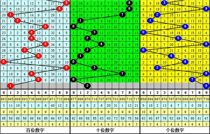 其中,号码奇偶比为31:26,偶数号码走冷;号码大小比为30:27,大小 号码走势基本持平;号码012路比为23:22:12,2路号码出现比例较低。
