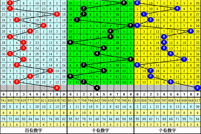 百个位合:前10期百个位两码合开出:2、5、7、7、6、0、2、9、6、7,其中百个位两码合012路比为4:3:3,奇偶比为5:5,本期看好百个位两码合开出1路号,参考两码合0、1、7。