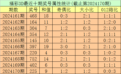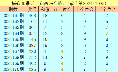 开奖回顾:第2024170期福彩3D奖号为225。奖号形态为组三,大小比为1:2,和值为9,奇偶比为1:2,012路比为0:0:3,跨度为3。