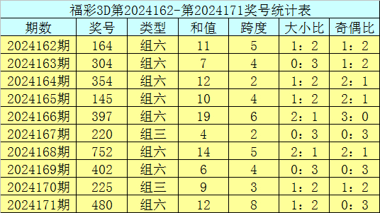 开奖回顾:福彩3D第2024171期奖号:480。