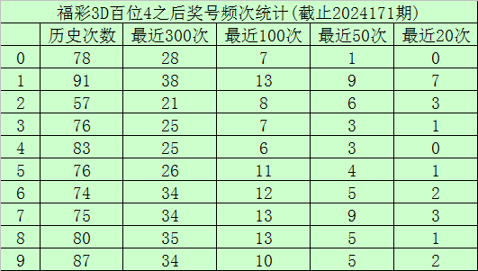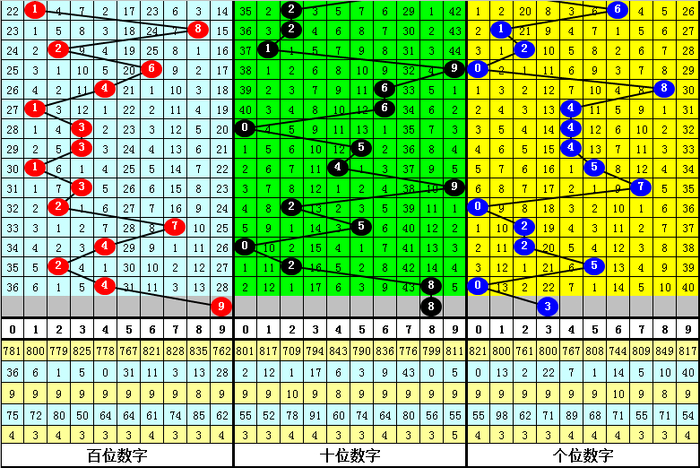 百位杀号:上期百位开出号码4,历史上百位号码4已开出778次了,最近100次百位号码4出现之后,其下期各号码频次分别为:号码1、7、8出现13次,6出现12次,5出现11次,9出现10次,2出现8次,0、3出现7次,4出现6次。