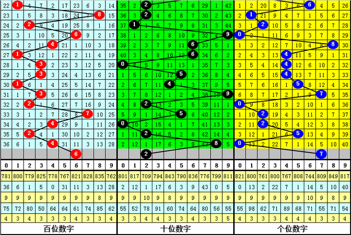 第三位上期开出奖号0,走小5点,本期注意该位走大,关注号码7。