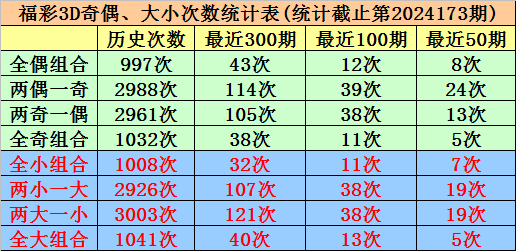 奇偶、大小分析:在最近50期开奖中,两偶一奇组合开出24次,当前遗漏0期、两奇一偶组合开出13次,当前遗漏5期、全奇组合开出5次,当前遗漏7期、全偶组合开出8次,当前遗漏2期,本期注意两偶一奇组合;全小组合出现7期,当前轮空4期、两小一大组合出现19期,当前轮空0期、两大一小组合出现19期,当前轮空1期、全大组合出现5期,当前轮空22期,本期看好开出两大一小组合。