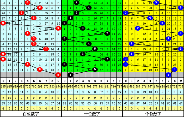 百位上期开出号码6,为偶数,奇数号近期开出相对较少,目前轮空了4期,本期注意奇数号码逐渐回补,关注号码9。