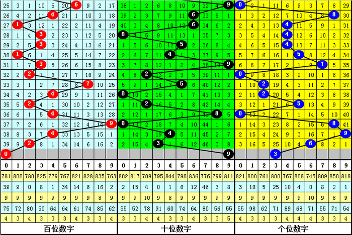 其中,号码0出现17次,1出现12次,2出现11次,3出现17次,4出现11次,5出现16次,6出现13次,7出现16次,8出现16次,9出现9次,奇偶比为70:68,奇偶号码基本持平,本期预计奇数热出,奇偶比参考2:1;大小比为:70:68,大小 号码持平,本期适当关注小 号转热。