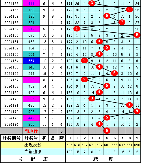 福彩3D第2024174期最大跨度开出4,近期最大跨度波动较大,本期预计最大跨度在3-7区段出现,最大跨度关注34567,精选跨度5。