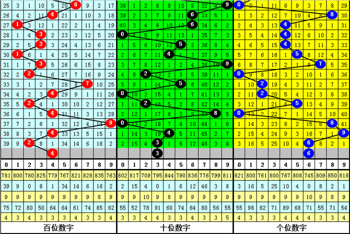 百位:2024170期-2024174期出号:24942,振幅为7点,分布比较分散,本期预计百位走大,参考4。