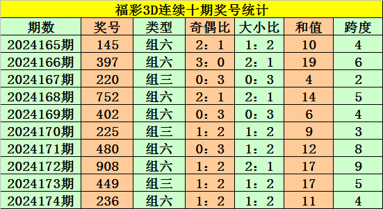 上期回顾:福彩3D第2024174期奖号:236。组六、小小大、偶奇偶。