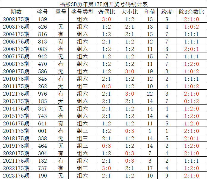 其中,组三号码开出4次,组六号码出现18次,上期奖号为组六号码,本期预计继续开出组六号码。