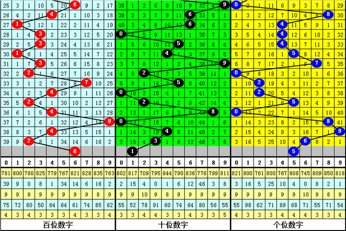 号码012路比为5:9:7,本期预计该位开出2路号码,参考号码5。