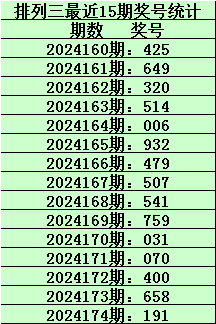 开奖回顾:排列三第2024174期开出奖号:191,其类型为:组三,直选形态为:奇奇奇、小大小、101路、冷冷热、质合质。