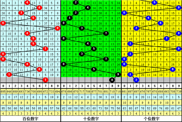 6.下期奖号0-9号码频次分别为:号码4开出7次;5开出5次;0、3开出4次;6开出3次;7、9开出2次;1、2、8开出1次。本期独胆参考7。