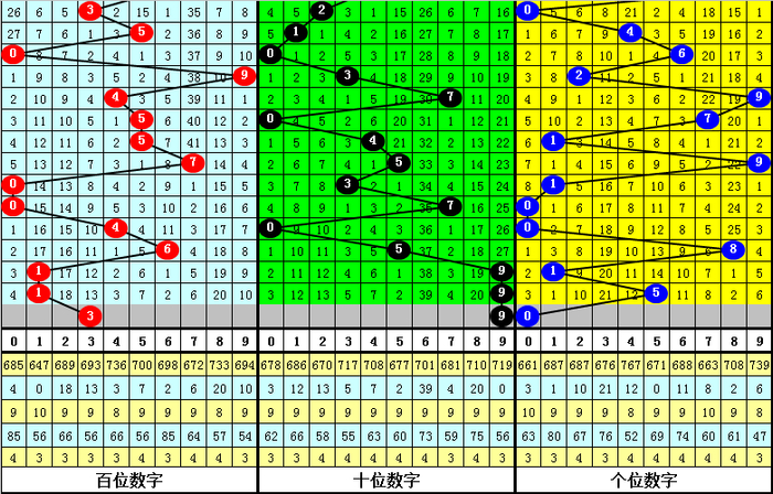 十位分析:上期该位奖号为9,近10期该位奖号012路比为5:3:2,其中0路号码连续出现2次,本期预计十位0路号码连续热出,参考号码9。