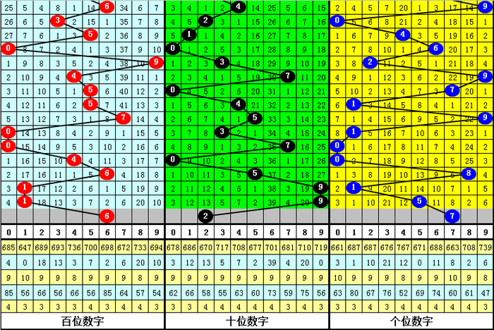 尾号球:上期奖号为5,开出大号、奇号,该位前10次开出大号、奇号的现象时其奖号分别为:147、205、129、389、889、425、649、479、507、759,其中尾号球012路比为6:2:2。