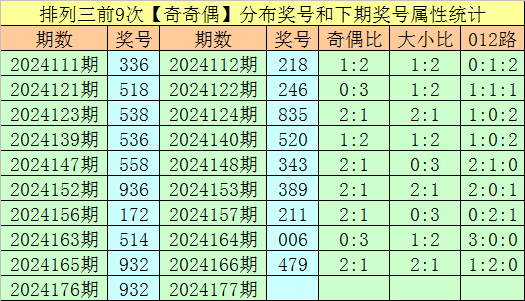 上期回顾:排列三第2024176期开出奖号932,类型为:奇奇偶、002路和大小小。