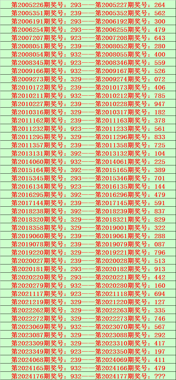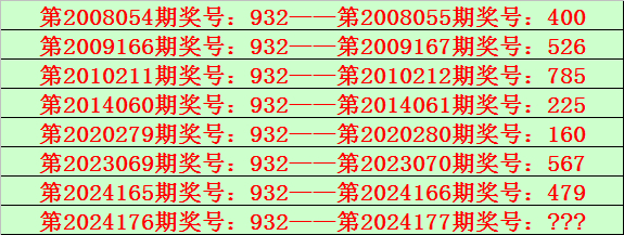 排列三第2024176期开出奖号932,该号码直选类型历史上出现了8次,前7次开出之后期下期奖号为:400、526、785、225、160、567、479,见下表: