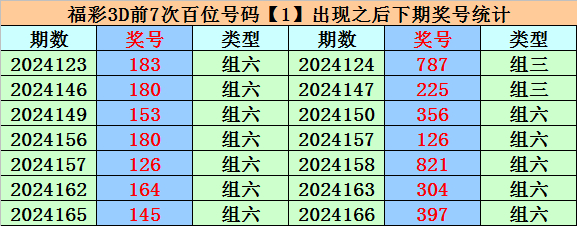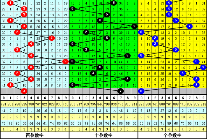 百位分析:百位上期开出号码1,历史上该位号码1出现了801次,最近100期号码1出现次,上期间隔10期再次出现。