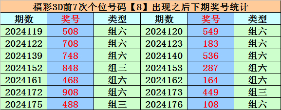 开奖回顾:福彩3D第2024176期开出奖号为108。组选类型为:组六,号码大小比为1:2,奇偶比为1:2。