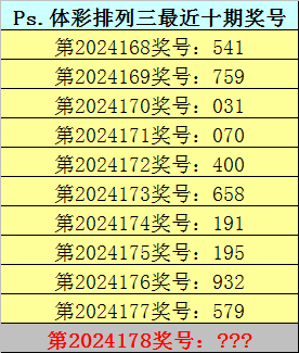 排列三第2024178期直选复式:(01678)(02578)(12347)