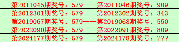 排列三第2024177期开出奖号579,该号码直选类型历史上出现了5次,前4次开出之后期下期奖号为:909、343、550、809,见下表: