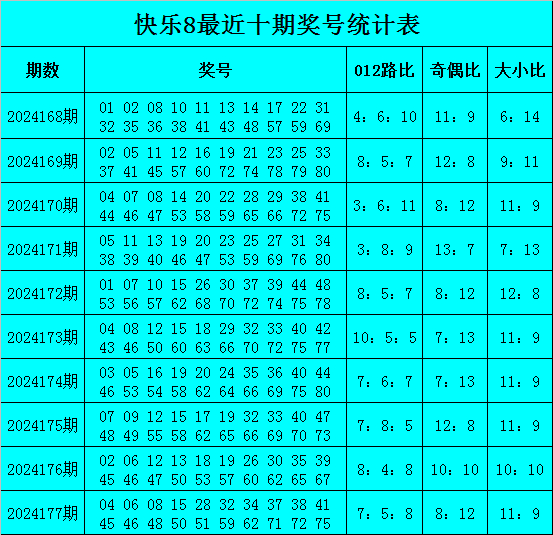 福彩快乐8第2024177期开奖回顾:04 06 08 15 28 32 34 37 38 41 45 46 48 50 51 59 62 71 72 75,其中奖号012路比为7:5:8,2路号码表现活跃。