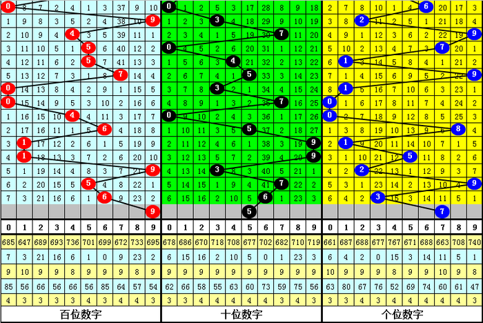 百十位差推荐:前三期百十位差分别开出6-2-0,本期预计百十位差走大,注意4出现。