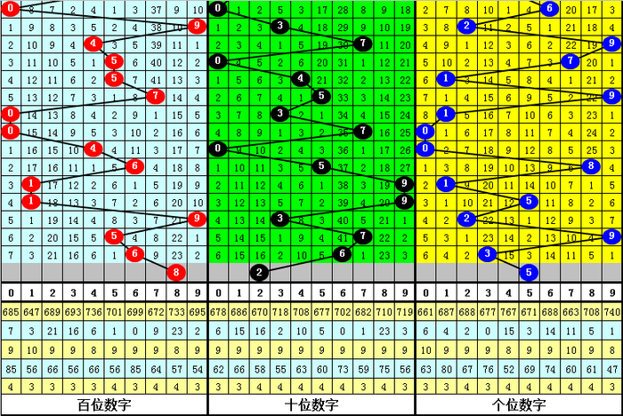 个位走势:最近10期出现在0-9之间,跨度为10点,开出范围较大,上期出现号码3,下降6点,本期看好该位走大。另外,最近10期该位012路号码比为5:2:3,2路近期走冷,本期防2路回补,关注号码5。