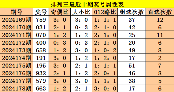 上期回顾:体彩排列三第2024178期奖号:663,奇偶比1:2,大小比2:1,012比3:0:0。
