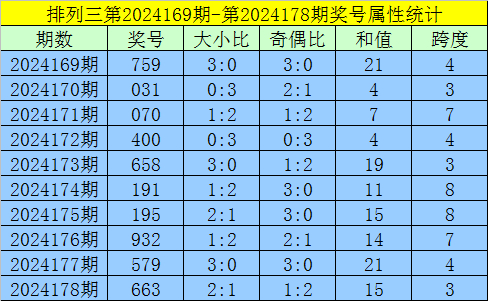 上期回顾:排列三第2024178期出现奖号663。开出组三,奇偶比1:2,012路比3:0:0,大小比2:1,和值15,跨度3。