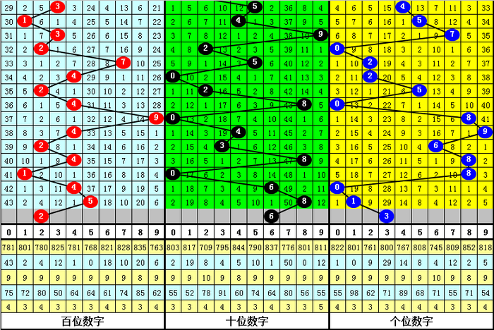 百位:上期开出号码5,遗漏37期,目前该位遗漏最大的号码为0,遗漏43期,本期没有解冻的迹象。