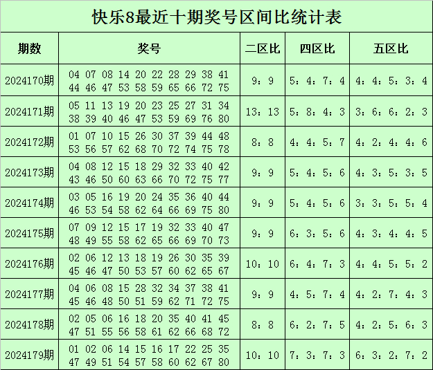 福彩快乐8第2024179期开奖回顾:01 02 06 14 15 16 17 22 25 35 47 49 51 54 57 58 60 62 67 80,其中奖号二区比为10:10,四区比为7:3:7:3,五区比为6:3:2:7:2,除2余数比为10:10,除4余数比为3:5:7:5,除5余数比为5:4:7:1:3。