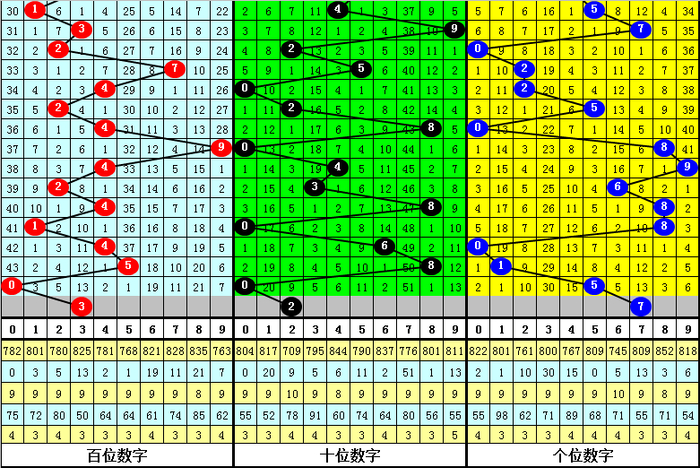 百位上期出现:冷号0,该位连续十期以热号出现较多,以温号出现较少,本期该位温号有3个:3、7、9,看好温号转热,关注号码3。