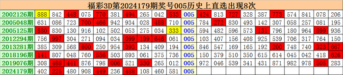 上期回顾:福彩3D第2024179期开出奖号005。