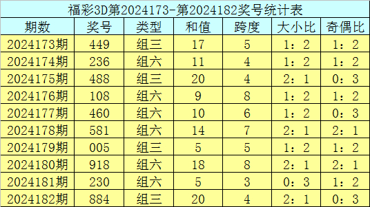 类型判断:上期奖号为884。号码4近10期出现5次,走热,号码出现频次较高,上期各位号码总体较热,本期注意高频热码出现。