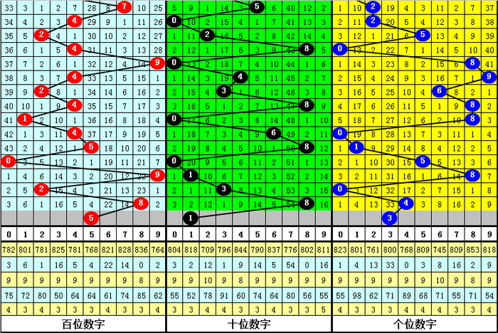 百位:上期奖号为:8,该位大号近期出现较少,上期上升了6个点位,本期防止该位下降,参考号码5。