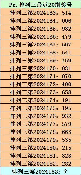 排列三第2024183期单注参考:466