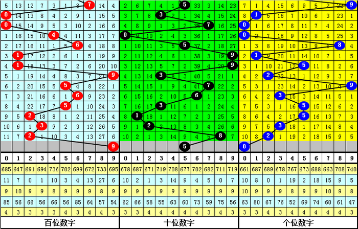 其中,组三开出5次,组六开出14,单选号码0-9分别出现: