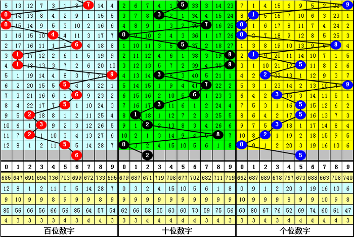跨度分析:在排列三第184期历史同期中,奖号跨度012路比为7:4:8,奇偶比为10:9,大小比为13:6,跨度出现期数为:跨度8→5期,跨度3、5→3期,跨度4、7、9→2期,跨度0、6→1期,跨度1、2→0期,本期预计开出1路跨度,精选跨度4。