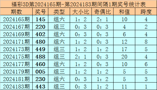其中大小比1:2,奇偶比3:0,和值15,跨度6。