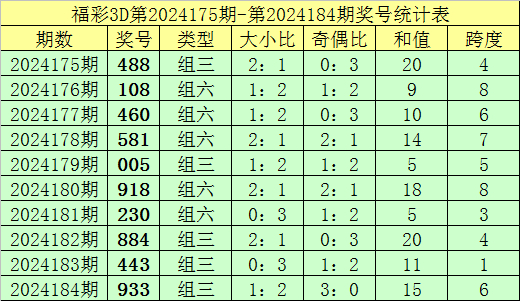 上期回顾:福彩3D第2024184期奖号:933。