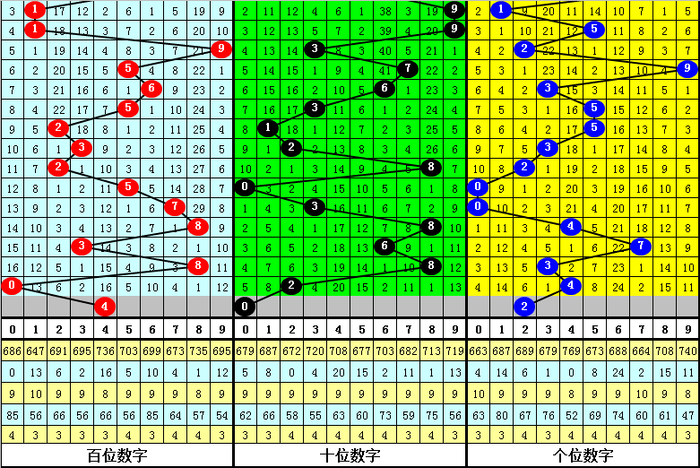 和尾推荐:排列三第189期历史同期,和尾奇偶比开出13:6,大小比开出12:7,012路比开出10:5:4,奖号和尾开出期数分别为:和尾 7→5期,和尾3→4期,和尾0、5→3期,和尾6→2期,和尾8、9→1期,和尾1、2、4→0期,本期适当关注偶和尾出现,参考和尾6。