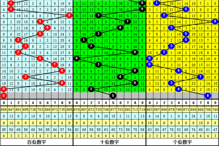 在最近9期开出奇偶分布:偶偶偶的奖号为:660-062-804-426-606-006-400-282-884,在下期出现号码分别为:891-128-426-185-430-932-658-500-367。其中百十个位号码分布情况如下:
