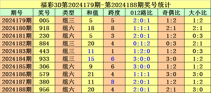012路分析:上期012路比2:0:1,上期1路号码轮空,本期重防回补,看好2路号码走冷,012比参考2:1:0。