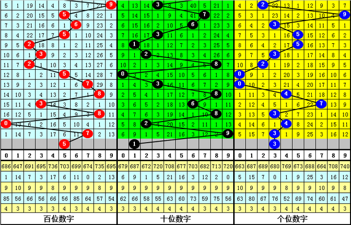 其中,百位奇偶比为6:4,大小比为5:5,本期百位一码参考5。