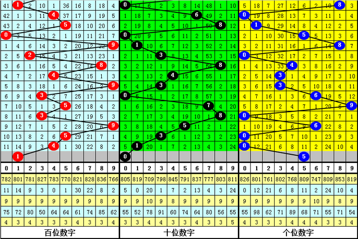 个位分析:最近7期个位分别开出奖号:3、6、9、0、6、0、0,个位振幅为9个点位,本期注意个位号码走大,关注一码5。
